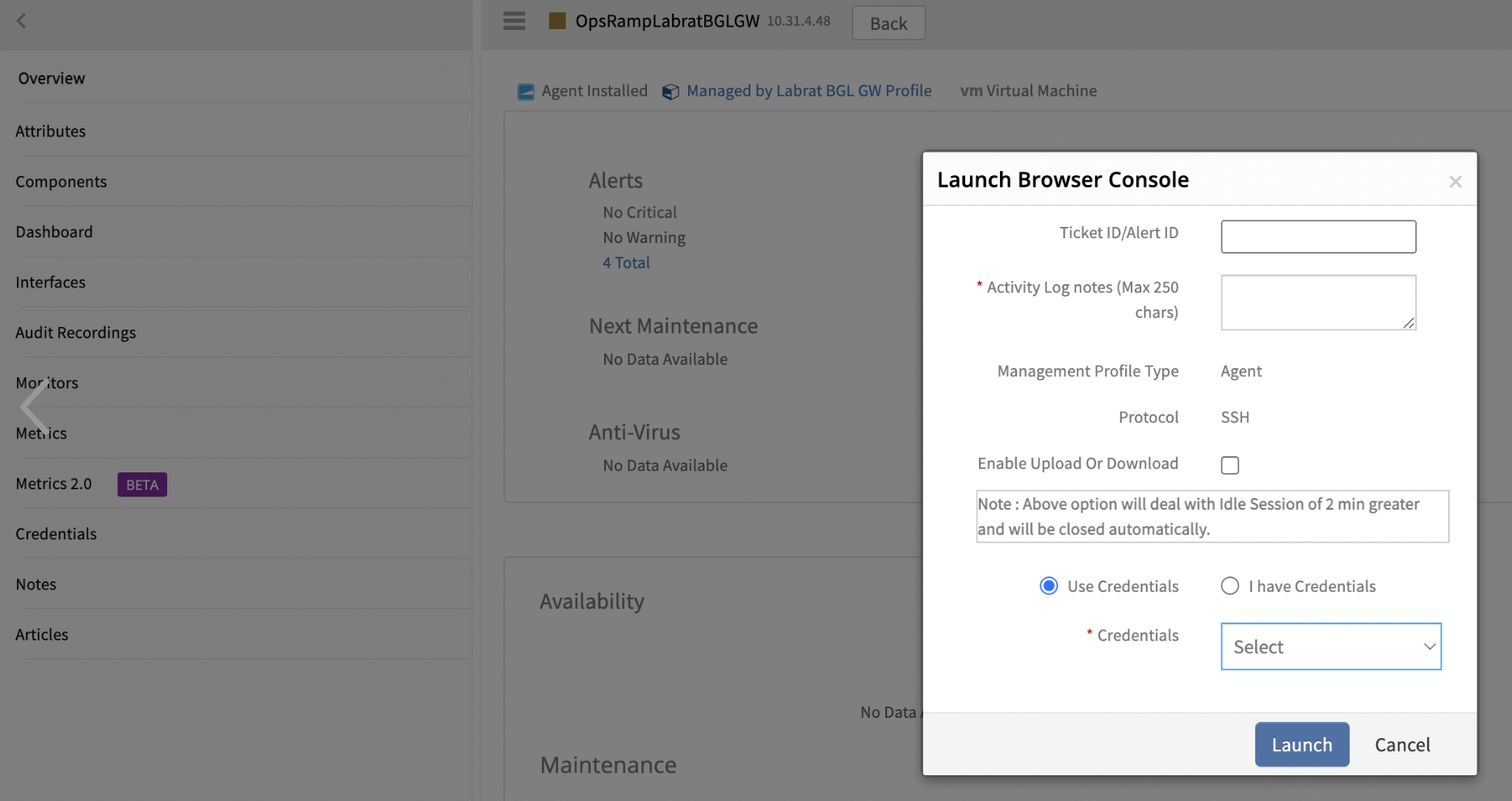 In PostgreSQL monitoring, you do not need to assign SSH login credentials on the target device or on the Gateway device.
